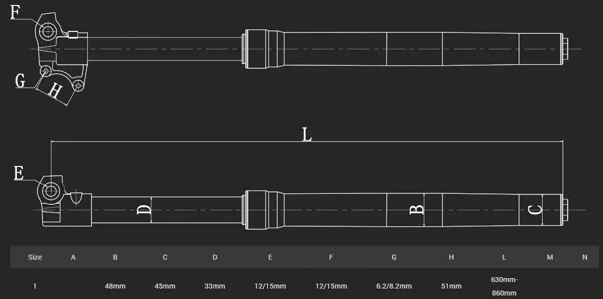 پٹ بائیک سنگل ایڈجسٹ ایبل انورٹیڈ فرنٹ فورک میں ٹاپ ماونٹڈ ایڈجسٹمنٹ فیچر ہے جو سواروں کو بہترین کارکردگی کے لیے ریباؤنڈ ڈیمپنگ اسپیڈ کو آسانی سے اپنی مرضی کے مطابق کرنے کی اجازت دیتا ہے۔ اس کے علاوہ، یہ ڈائی کاسٹ یا جعلی پاؤں کا انتخاب پیش کرتا ہے، جو سوار کی ترجیح کے مطابق فراہم کیا جاتا ہے۔ سوار اپنی پٹ بائیک میں ذاتی ٹچ شامل کرنے کے لیے اندرونی اور بیرونی ٹائر کے رنگوں کو اپنی مرضی کے مطابق کرنے کا بھی انتخاب کر سکتے ہیں۔ بنیادی طور پر پٹ بائیکس، آف روڈ گاڑیوں اور دو پہیوں والی الیکٹرک موٹر سائیکلوں پر استعمال کے لیے ڈیزائن کیا گیا، یہ پٹ بائیک سنگل ایڈجسٹ ایبل انورٹیڈ فرنٹ فورک تمام خطوں اور سواری کے حالات میں استحکام اور کنٹرول فراہم کرتی ہے۔